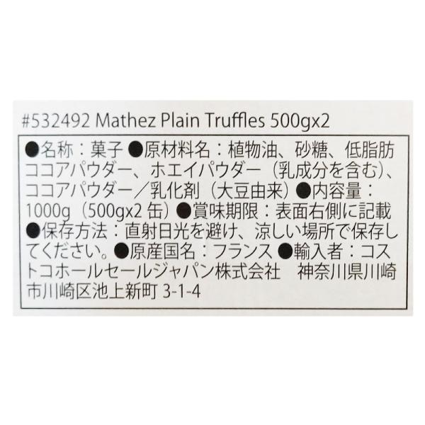 マセズ プレーントリュフ 500g×2缶 フレンチカカオトリュフ Mathez マセス トリュフ チョコレート バレンタイン プレゼント まとめ買い 532492
