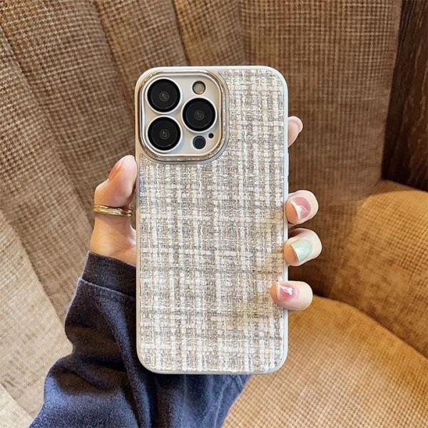 iPhoneケース iPhone 雑貨 女子 女の子 ファブリック チェック シンプル カジュアル 便利 プチプラ オレンジ/パープル/ブラック/グレー iPhone15 iPhone14 iPhone13 iPhone12 iPhone11 Plus Pro ProMax