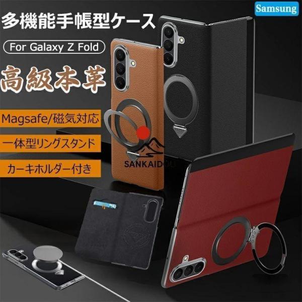 本革製&極上感触 Galaxy Z fold7 ケース 手帳型 magsafe galaxy z flod 7 保護カバー zfold7 z fold6 ケース 手帳型 ヒンジ保護 耐衝撃 リング付 カード入れ 牛