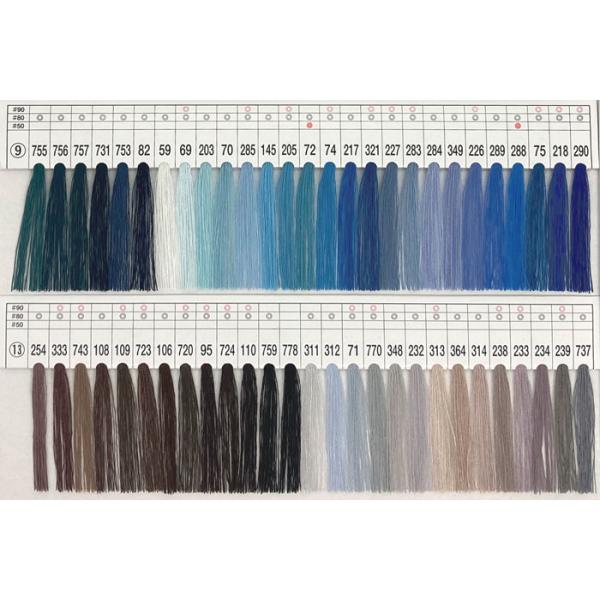 フジックスのキングスパンは、ポリエステル素材の中でもミシン糸用として特別に紡糸された、高強力、低伸度、低収縮タイプの原糸を用い、さらに高度な加工技術に よって一段と<可縫性>を高めたミシン糸です。