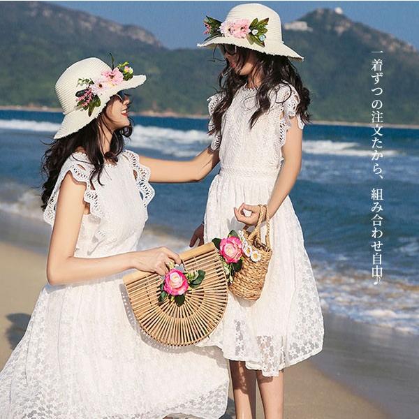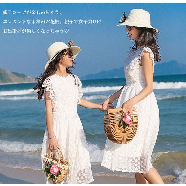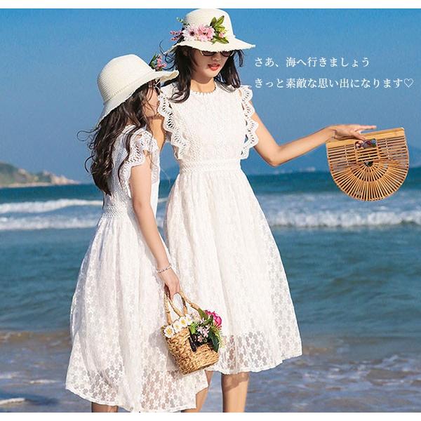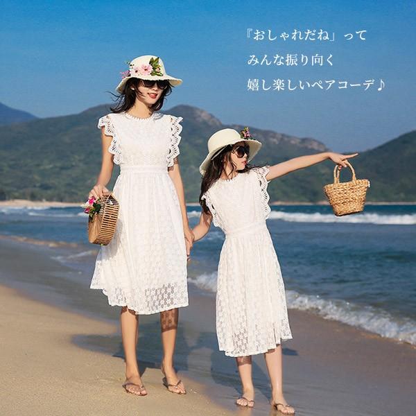 親子コーデ ワンピース レディース 子供ワンピース オシャレ フリル ホワイト 白 シアー感 ママ 母 キッズ 親子 シンプル ペアルック 韓国 かわいい リゾート 沖縄 夏ワンピ 子供 キッズ bi109ze