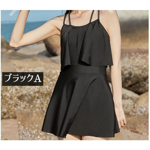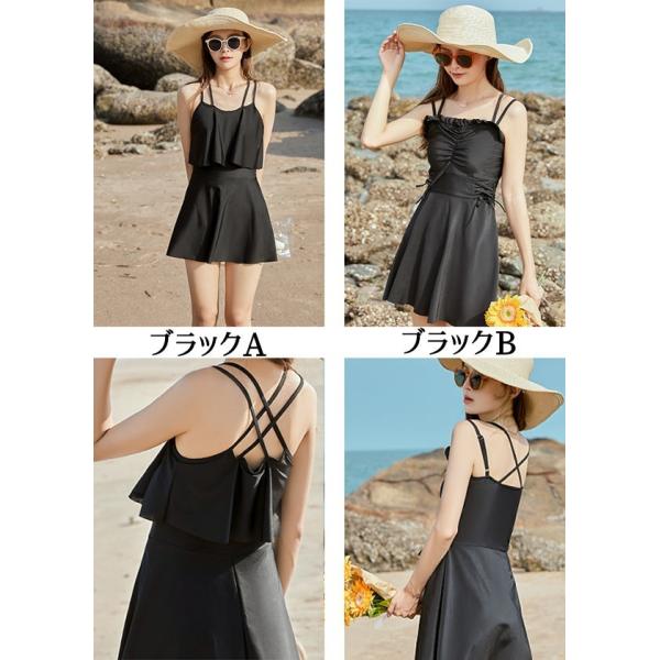 水着 レディース ワンピース キャミソール 体型カバー シャーリング ブラック 無地 海 プール 温泉 女性用 セクシー 20代 30代 女性用