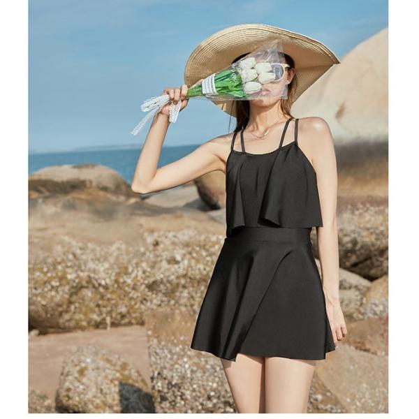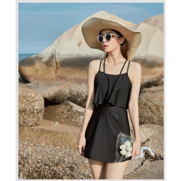 水着 レディース ワンピース水着 大きいサイズ キャミソール フリル水着 体型カバー ショートパンツ シャーリング リボン ブラック 無地 シンプル 海 プール 両行 温泉 韓国 女性用 セクシー 大人可愛い 韓国風 20代 30代 女性用 大人水着 ブラック S M L 2L 3L d1340s1s1jc