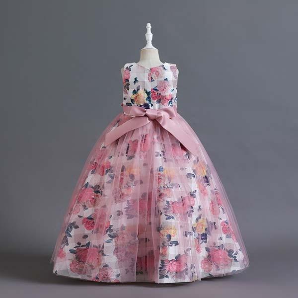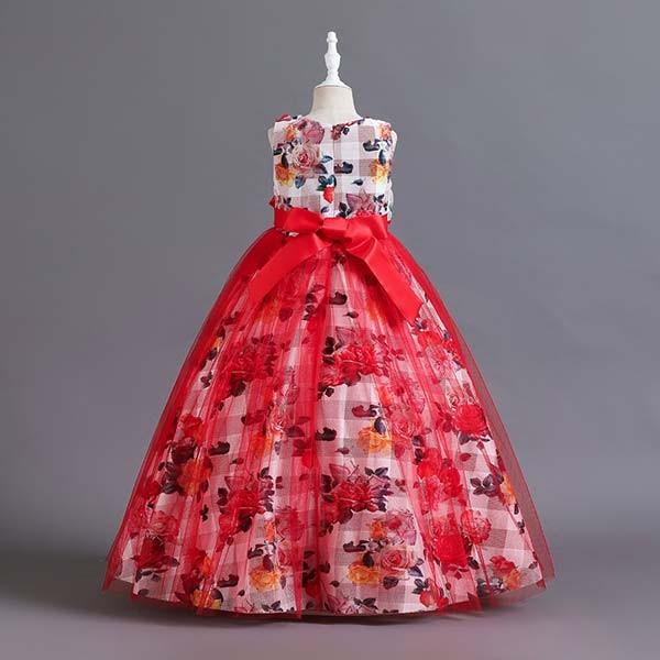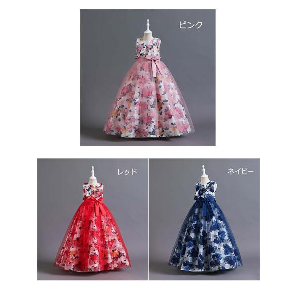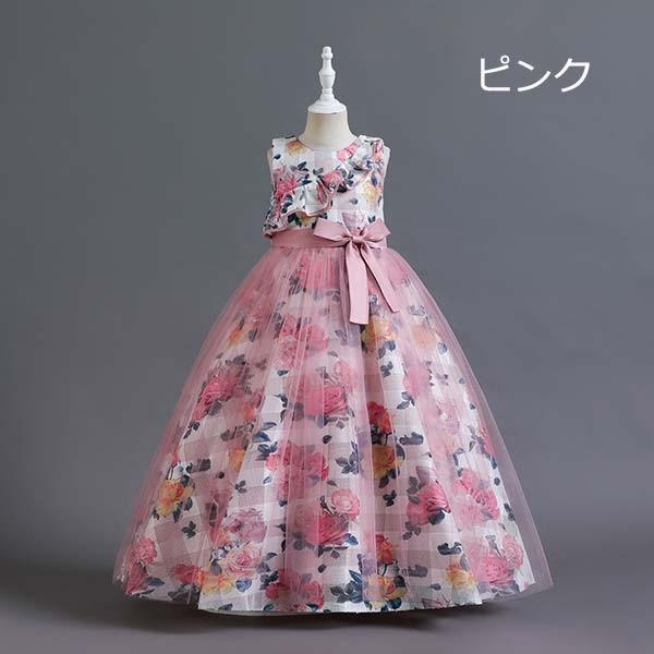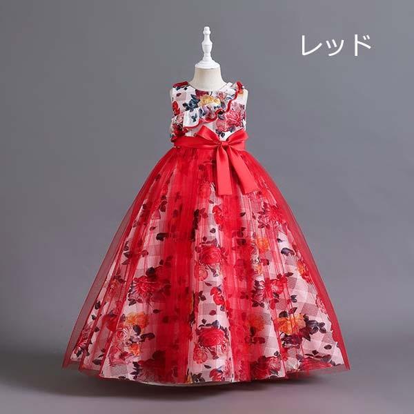キッズ ドレス パーティー 120-160cm お姫様 無袖 ラウンドネック エレガント ワンピース 子供ドレス 女の子 ロング丈 フォーマル パフスカート ステージ衣装 ピアノ 発表会 ピンク レッド ネイビー da035m5m5z7