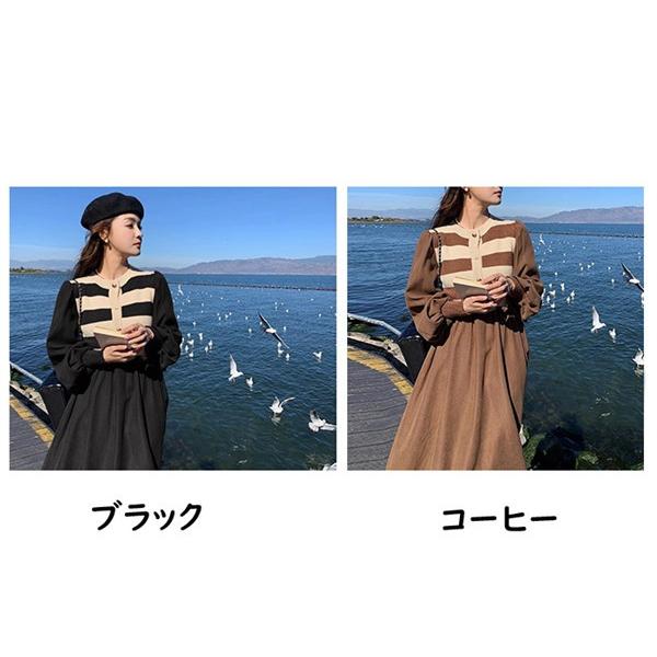 春秋 ボーダー柄 ニットワンピース 2色展開 S M L 2L 大きいサイズ 可愛い レディース デート きれいめ シンプル コーデ カジュアル ブラック コーヒー