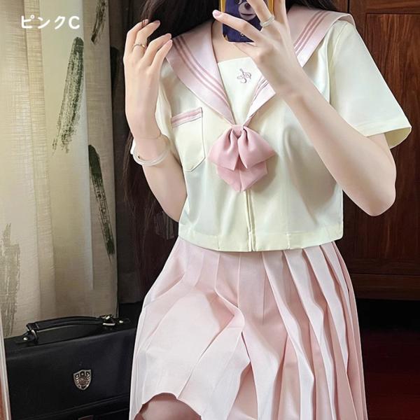 【サイズ有S/M/L/XL】制服 セーラー服 半袖 リボン付き セーラー服 スカート 夏セーラー ピンク 女子高生 制服 桜の刺〓 JK風 女性用 女の子衣装 可愛い da138h2