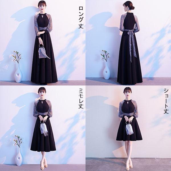 ドレス 大人 ピアノ 発表会 演奏会 結婚式 黒 長袖 パーティードレス イブニングドレス ロング丈 ミモレ丈 ショート丈 フォーマル
