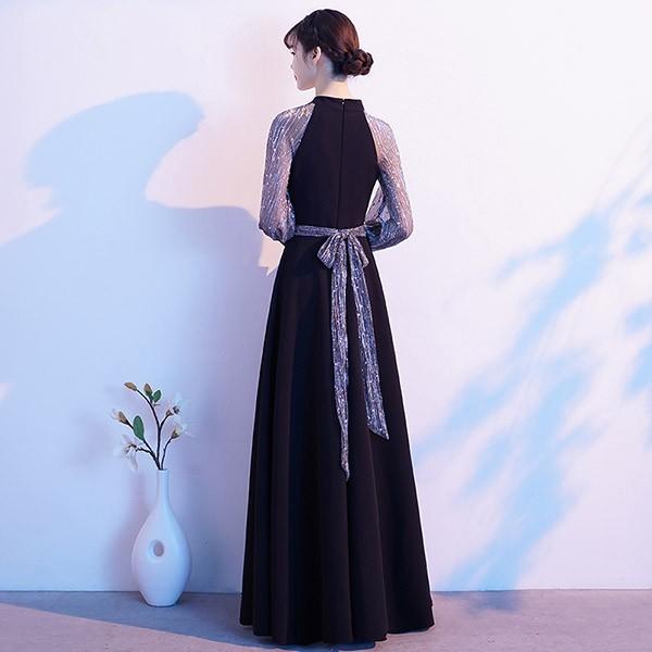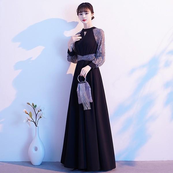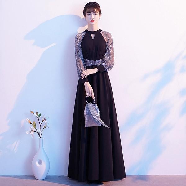 ドレス 大人 ピアノ 発表会 演奏会 結婚式 黒 長袖 ロング丈