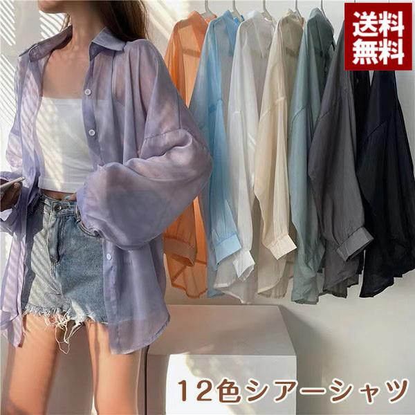 新色 12色 シアーシャツ 透け感 レディース ブラウス 長袖 トップス シャツ 重ね着 オーバーサイズ トレンド シースルー 日焼け対策 羽織 夏物 ホワイト