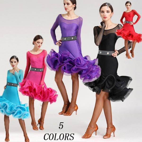 社交ダンス 衣装 ラテンドレス ラテン衣装 社交ダンスドレス 競技着 練習服 演出用 レッド ローズ パープル ブルー ブラック