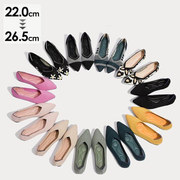 走れるパンプス 痛くない 大きいサイズ ポインテッドトゥ ニット ぺたんこ シューズ ローヒール フラット 就活 入学式 卒業式 結婚式