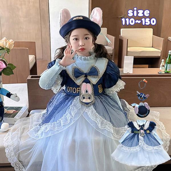 ワンピース ディズニー ズートピア ジュディ・ホップス風 ワンピース 子供 余興 ハロウィン仮装 ズート Judy Hopps風 警察服 コスプレ衣装 ウサギの警官服