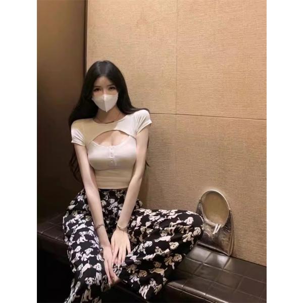 胸開き カットソー レディース 半袖 Tシャツ 胸空き トップス セクシー ヘルシー 肌見せ デコルテ デザイン フロントボタン タイト ストレッチ 無地 大きいサイズ M L LL 3L 4L 5L 春 夏 秋 大人可愛い ブラック ホワイト dd202x1x1zq