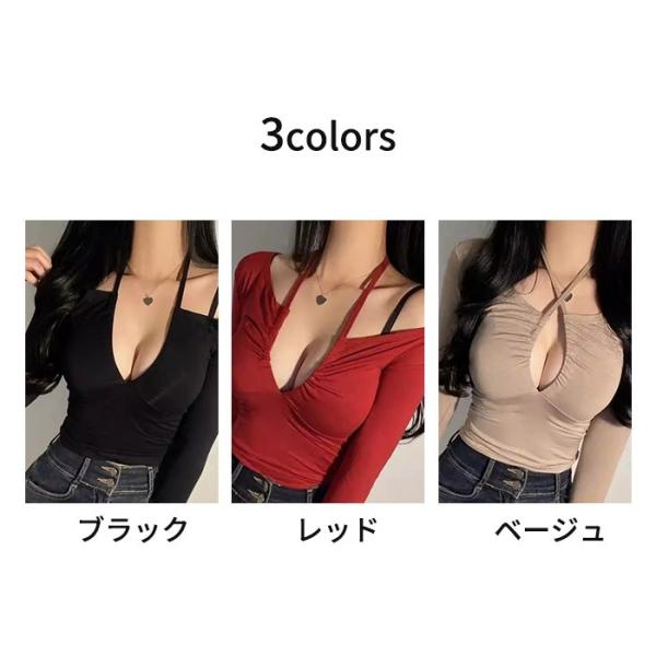 カシュクール トップス レディース 深Vネック ショート丈 オフショルダー ストレッチ 長袖 タイト セクシー 肌見せ 谷間メイク クロスストラップ きれいめ 大人カジュアル 春 秋 デート服 イベント 大きいサイズ 全3色 ブラック レッド ベージュ L LL 3L 4L 5L 送料無料 dd206x1x1zq