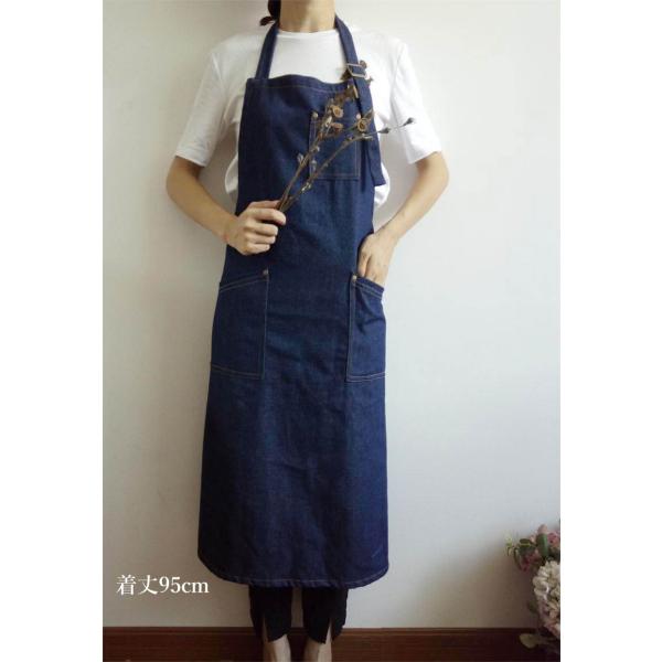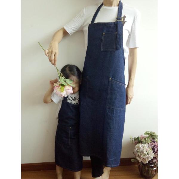 ワークエプロン カフェエプロン デニム生地 北欧風 保育士 美容師 花屋 エプロン ワンピース ロング丈 フラワーアート 男女作業