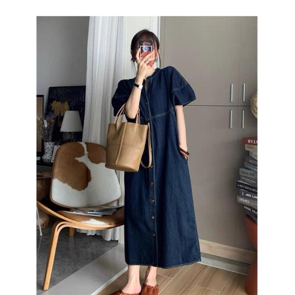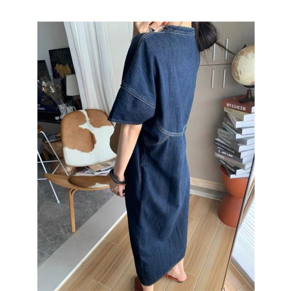 デニム ワンピース 半袖 夏用 夏服 レディース ゆったり マキシワンピ 半袖 きれいめ Vネック お出かけ リゾートワンピース