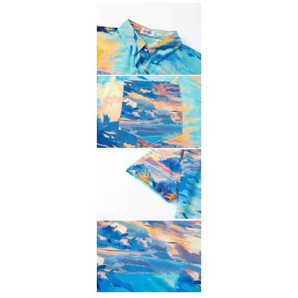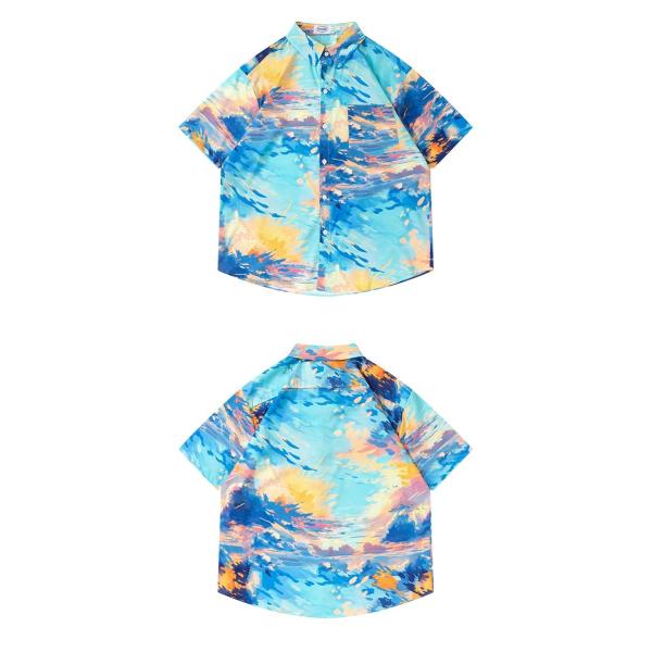 アロハシャツ 男女兼用 開襟 5分袖 ハワイアン 総柄 可愛い ゆったり 体型カバー オーバーサイズ レディース メンズ 開襟シャツ 夏 大きいサイズ シンプルデザイン カジュアル ストリートリゾート 旅行 海 ビーチ ブルー df150t2t2d7