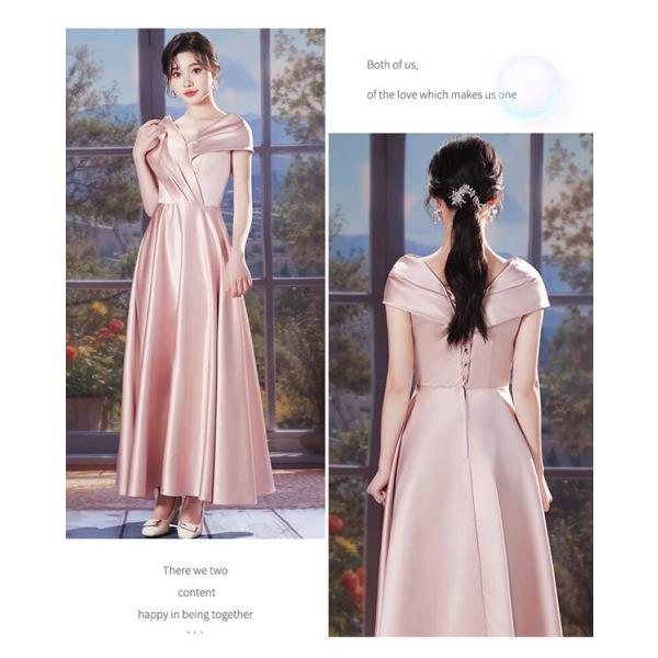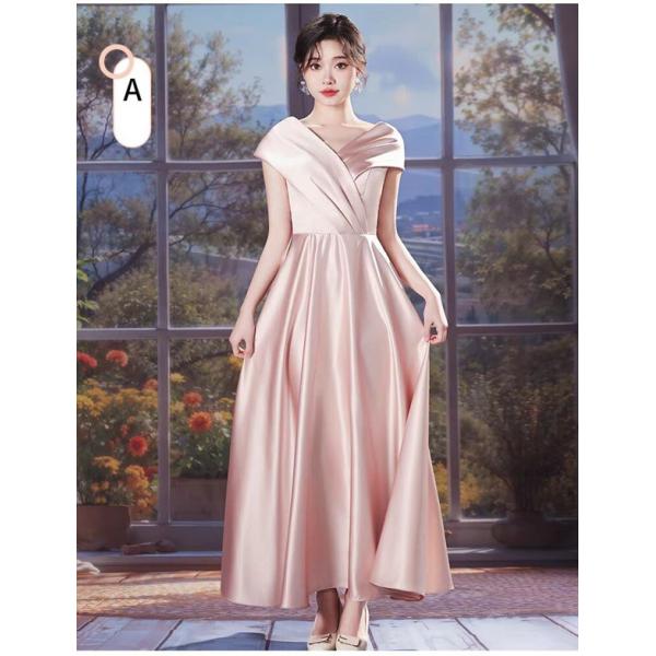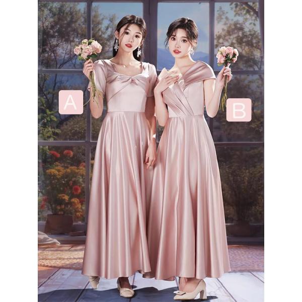ブライズメイドドレス パーティードレス お揃いドレス 花嫁 ウェディング ピンク グレー 介添えドレス Aライン ロングドレス プリンセスドレス ピンクXS-4XL