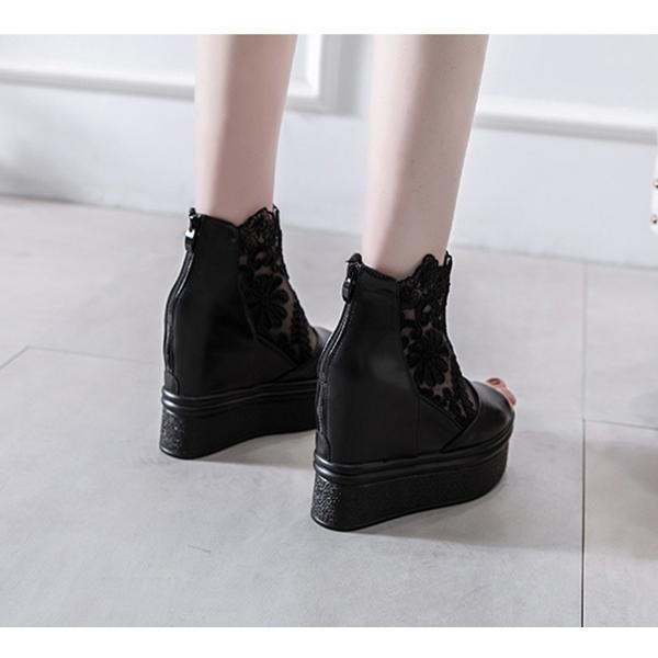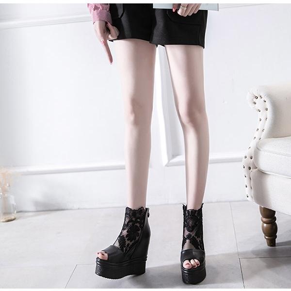 サンダル レディース 厚底 ウェッジソール ヒール12cm レース 靴 厚底サンダル 夏 美脚 女性 大人 ブラック ホワイト