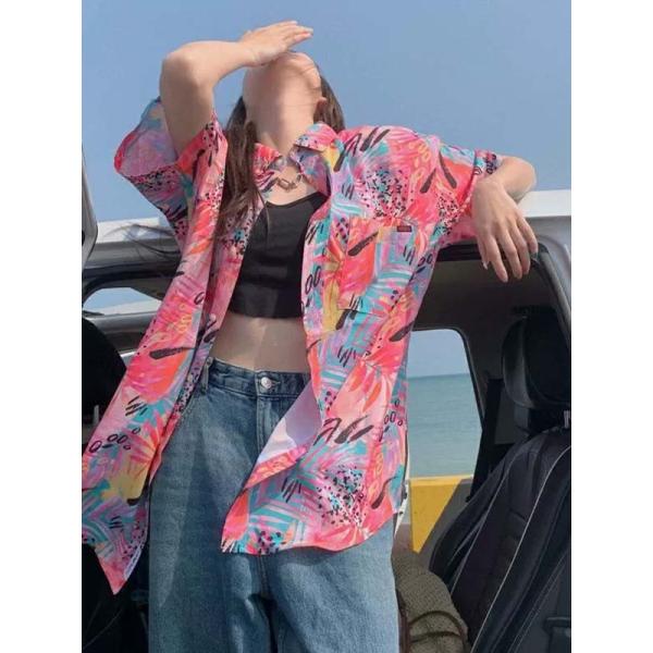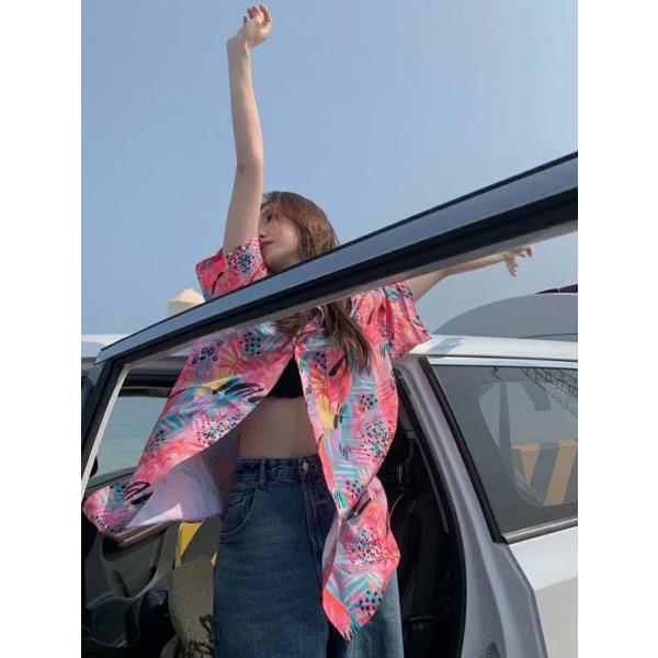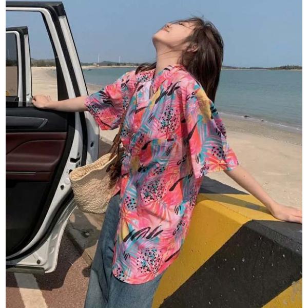 アロハシャツ レディース 夏物 リゾート ゆったり 開襟 半袖