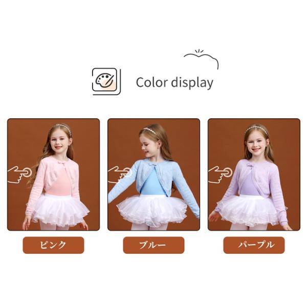 ボレロ 子供 キッズ バレエ 女の子 長袖 トップス ニット ダンス バレエトップス レッスン 防寒 温か 寒さ対策 練習着 こども用 ブルー 紫 ピンク バレエ用品 ベビー服 カーディガン かわいい リボン