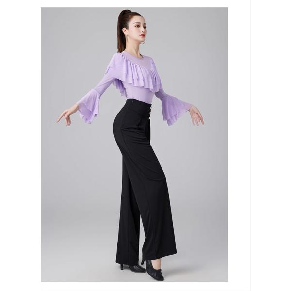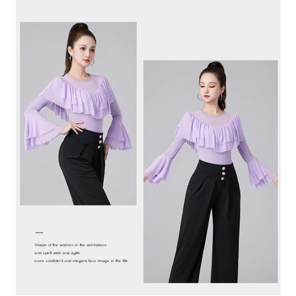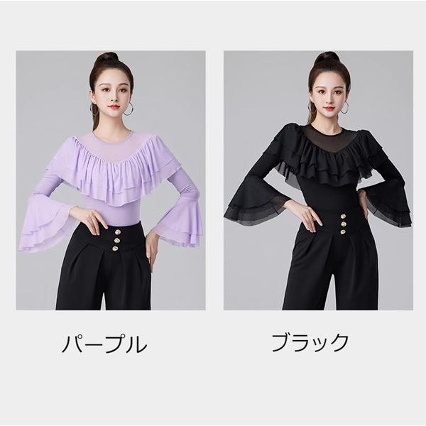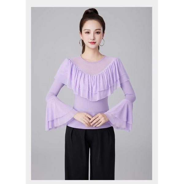 社交ダンス ダンスウェア トップス レディース パット無し 長袖 ラテン モダン チャチャチャ ダンスウェア ダンス衣装 フリルトップス フリル