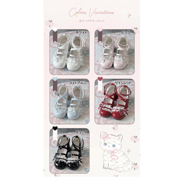 パンプス ロリータ ロリィタ レディース ロリータ靴 お嬢様 甘ロリ ゴスロリ ゴシックロリータ 2.0 - 25.5 白 ブラック 黒 ピンク ラウンドトゥ ストラップ