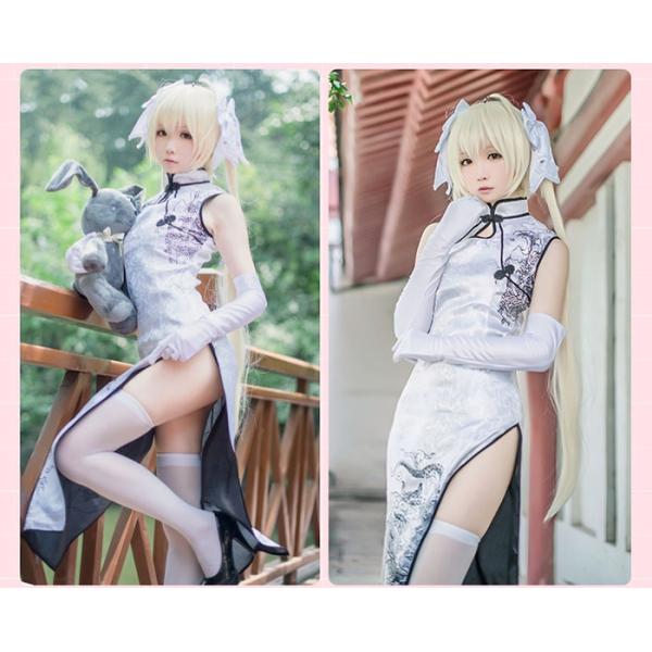 ヨスガノソラ 春日野穹 チャイナドレス ホワイト ブラック コスプレ衣装 COSPLAY cosplay コスチューム 学園祭 イベント 文化祭 仮装 変装 la166h2h2z7