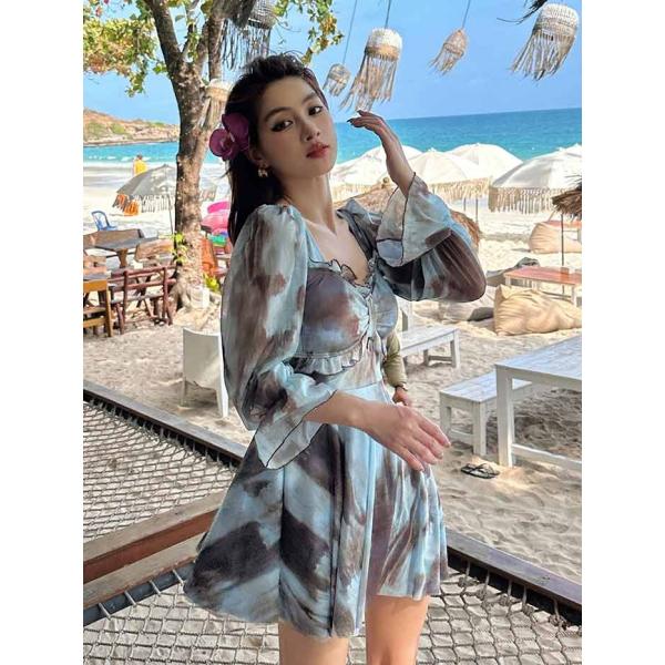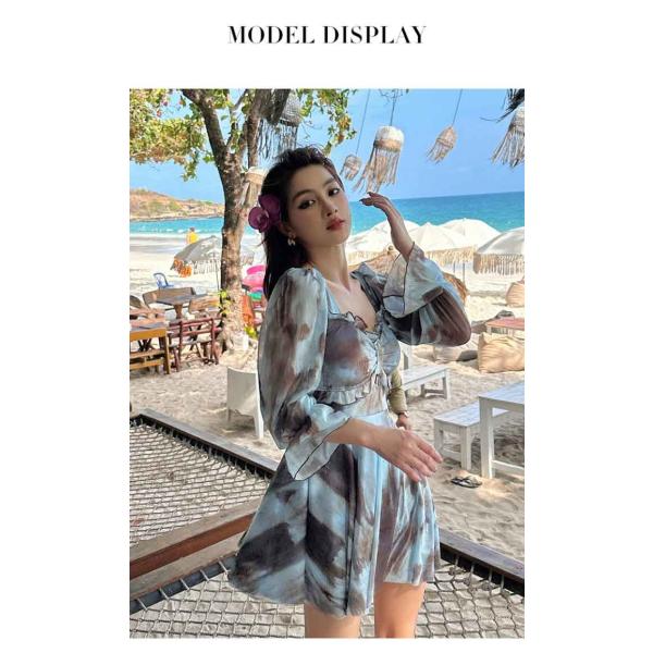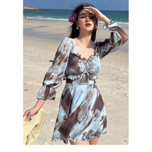 ワンピース水着 レディース 体型カバー 一体型パンツ付き 水着 日焼け防止 露出控えめ水着 ワンピース ぽっちゃり 大きいサイズ かわいい ブルー 着痩せ パッド付 ビーチ 海デート 韓国風 女性用 大人 グラデーション mg009m3m3m7
