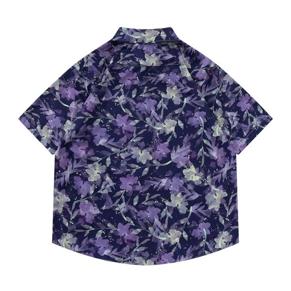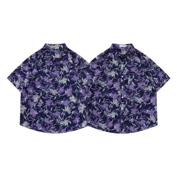 アロハシャツ シャツ レディース メンズ 開襟シャツ 葉柄 夏物 ハワイアン 半袖 大きいサイズ シンプルデザイン 開襟 オープンカラー カジュアル ストリートリゾート パープル mo001jcjcm7