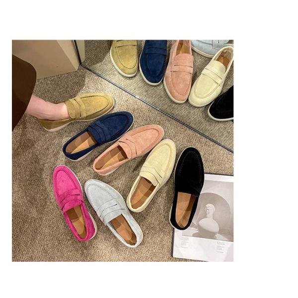 ローファー レディース モカシン スエード パンプス 痛くない 柔らかい ドライビングシューズ フラットシューズ ぺたんこ 靴 23cm 26cm 黒