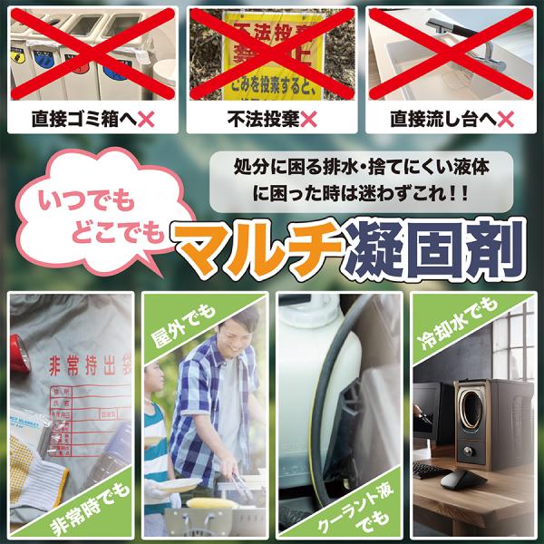 水分を含む液体をすばやく固めるマルチ凝固剤!