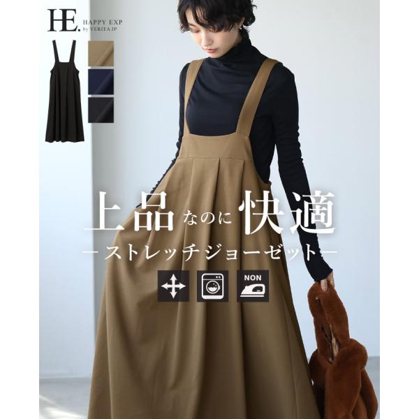 ジャンパースカート ジャンスカ レディース 無地 30代 40代 50代 大人 きれいめ フレア スカート ロング丈 レイヤード 体型カバー メール便不可