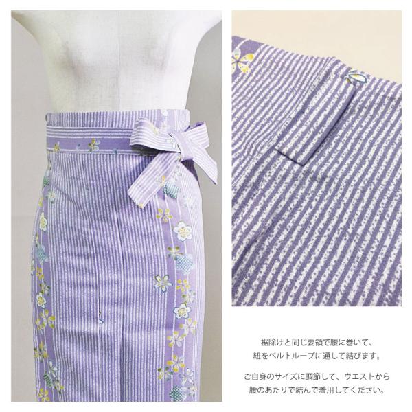 下半身は裾除けと同じ要領で腰に巻いて、紐をベルトに通して着ます。