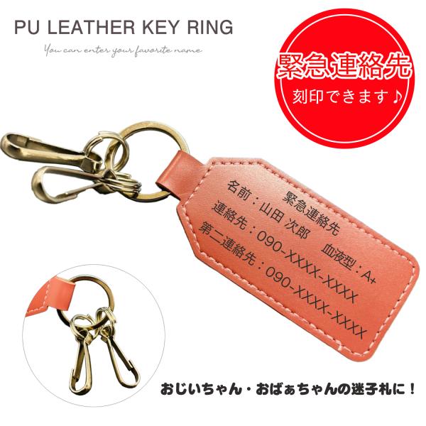 【緊急連絡先】刻印 キーホルダー 迷子札 PUレザー 軽量11g 6色 高齢者用 IK-FACTORY