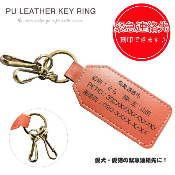 【緊急連絡先】刻印 キーホルダー 迷子札 PUレザー 軽量11g 6色 犬 ネコ用 ペット用 IK-FACTORY