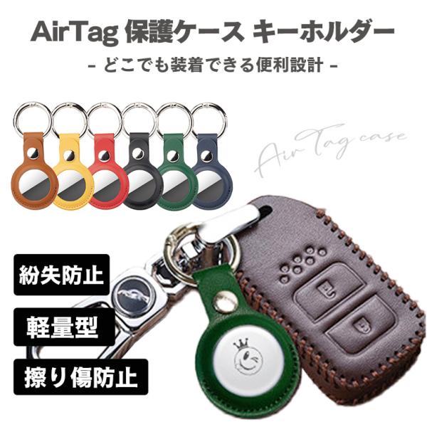 AirTag ケース キーホルダー レザー 保護カバー 軽量 紛失防止 鍵 バッグ ペット 首輪 対応