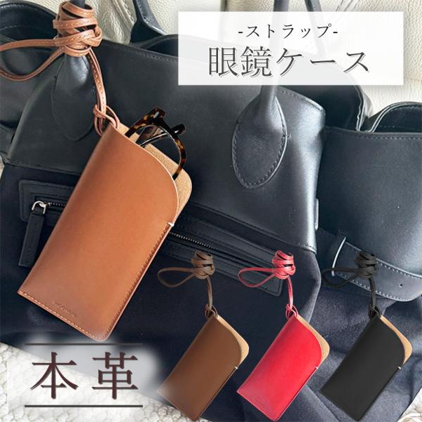 眼鏡ケース スリム 本革 首かけ メガネ サングラス ストラップ 付き レザー おしゃれ かわいい 男女