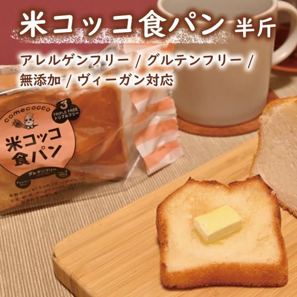 米コッコ食パン 半斤(アレルゲンフリー / グルテンフリー / 無添加 / 食品添加物不使用 / 動物性食品不使用 / バター・マーガリン・ショートニング不使用)