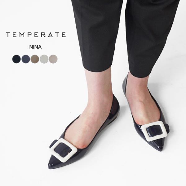 テンパレイト レインシューズ パンプス レディース TEMPERATE NINA ポインテッドトゥ PVC バックル ローヒール フラット 靴