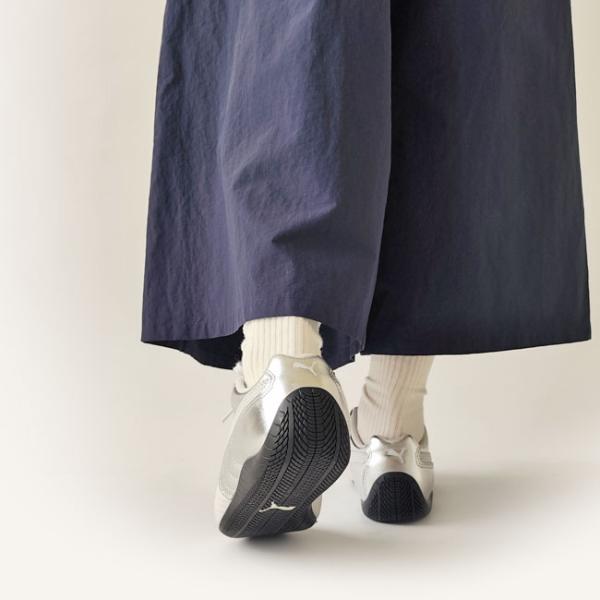 トラックレースのスピードにインスパイアされた、Speedcatをシルバーカラーにアップデート。 1999年に誕生し、80年代から90年代にかけてF1グランプリのドライバーが履いていた、レーシングカルチャーのシンボルにもなっているシューズ。 メタリックな質感は主張しすぎず、スタイリングにさりげない華やかさをプラス。 デボス加工のプーマロゴが洗練された印象を添え、カジュアルからきれいめまで幅広くマッチします。