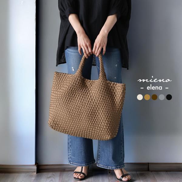 mieno [ミエノ] -elena- ナイロンメッシュ トートバッグ ポーチ付き(大) 編み込み イントレチャート メッシュトート 大きい 編込み 軽量 肩掛け (07000705r)