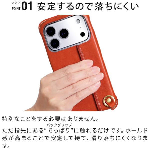 長年改良を重ね多くのお客様に長く愛されている、人気のスマホケース。持ちやすさを極めたバックグリップや落下防止のストラップリングで安心感を与えてくれます。