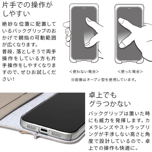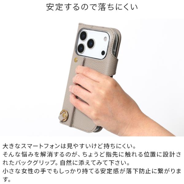 長年改良を重ね多くのお客様に長く愛されている、人気のスマホケース。持ちやすさを極めたバックグリップや落下防止のストラップリングで安心感を与えてくれます。