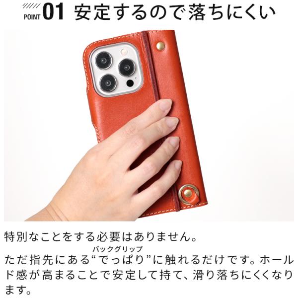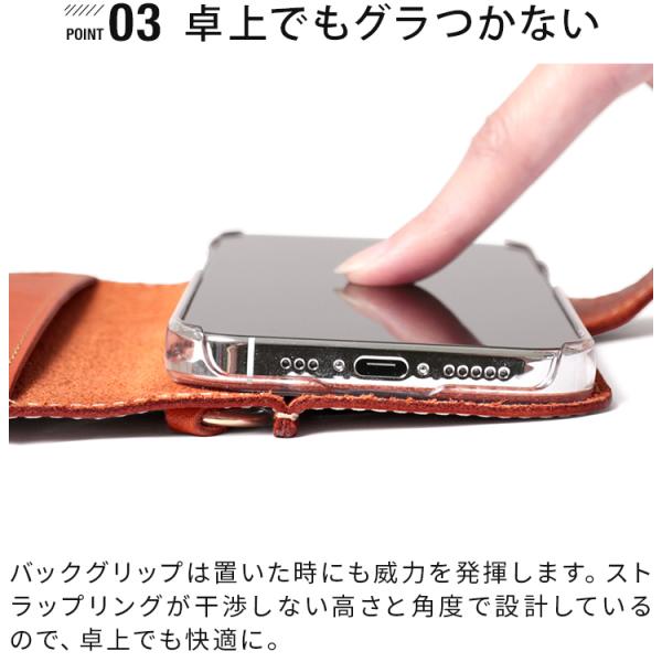 長年改良を重ね多くのお客様に長く愛されている、人気のスマホケース。持ちやすさを極めたバックグリップや落下防止のストラップリングで安心感を与えてくれます。