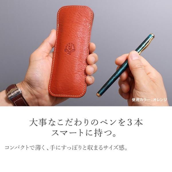 コンパクトで薄く、手にすっぽりと収まるサイズ感。大事なこだわりのペンを優しく包む、スマートに持つ大人のペンケース。