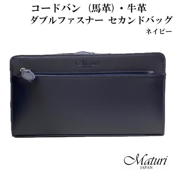 セカンドバッグ コードバン 馬革・牛革 Wファスナー ネイビー Maturi マトゥーリ JAPAN MT-42 NAVY 本革 ギフト プレゼント 紳士 送料無料(お取り寄せ)