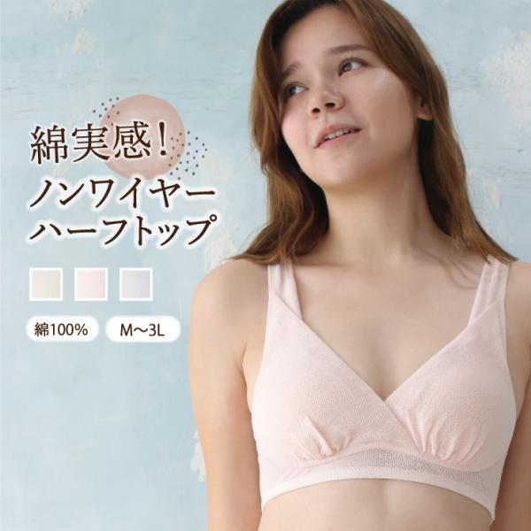 ノンワイヤーブラ ハーフトップ ここちよいブラ モールドカップ 幅広ストラップ ホックなし 響きにくい シルク入り素材 部屋着 下着 ジャコンヌ jaconne【9040】