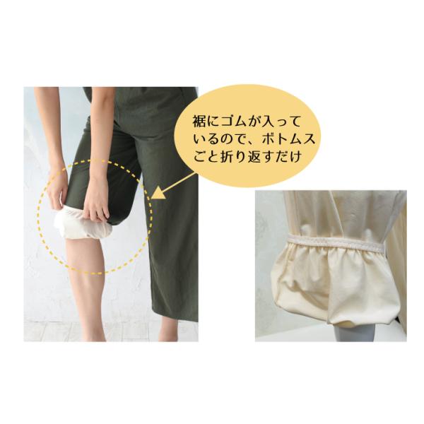 ・裾にゴムが付いているので、ボトムスごと折り返すだけ
