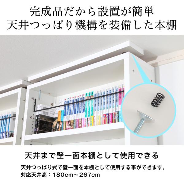 天井つっぱり本棚 愛書家 幅60cm 奥行17cm 対応天井高:180cm〜267cm 本棚 書棚 日本製 薄型 浅型 国産 半完成品 突っ張りラック 突っ張り棚